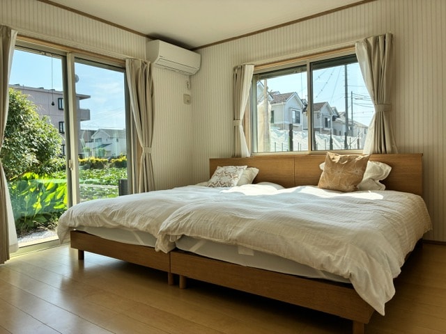 ●静かな住宅街での貸切一軒家でゆったり ●フルリノベーション済みの2階建て ●無料駐車スペース、最大8名可能(推奨4名) ●2つのワイドキングベッドでファミリーも快適 ●HDMI対応モニター(2台)、プロジェクタ、高速Wifiでテレワークも充実 ●スーパーまで徒歩6分、海まで徒歩10分 ●バスタブ、ドラム式洗濯機、キッチン、外シャワー ■ゆったり過ごせる貸切の一軒家 湘南の静かな住宅街にある、リノベーション済みの2階建て一軒家です。広々としたリビングに加え、2つの寝室にはワイドキングベッドを備え、小さなお子様連れのファミリーでも快適にお過ごしいただけます。最大で8名までご宿泊いただけますが、4名程度での滞在が特に快適です。のんびりとした時間をお楽しみください。 冬の湘南エリアは観光客も少なく、浜辺での散歩やジョギングに最適な季節です。空気が澄んでいるため、富士山がきれいに見える日が多いのも魅力です。 東京駅や渋谷駅から電車で約50分、茅ヶ崎駅からはタクシーで約9分の立地です。 ※現在ウッドデッキでのBBQはできません。ご了承の上ご予約下さい。