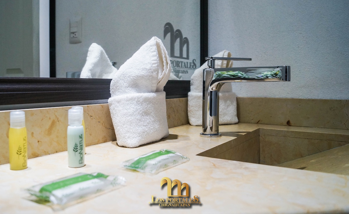 Hotel Los Portales te invita a disfrutar de sus cómodas, modernas y completamente nuevas habitaciones en un ambiente tranquilo, a una cuadra del centro de Chignahuapan Pueblo Mágico.
