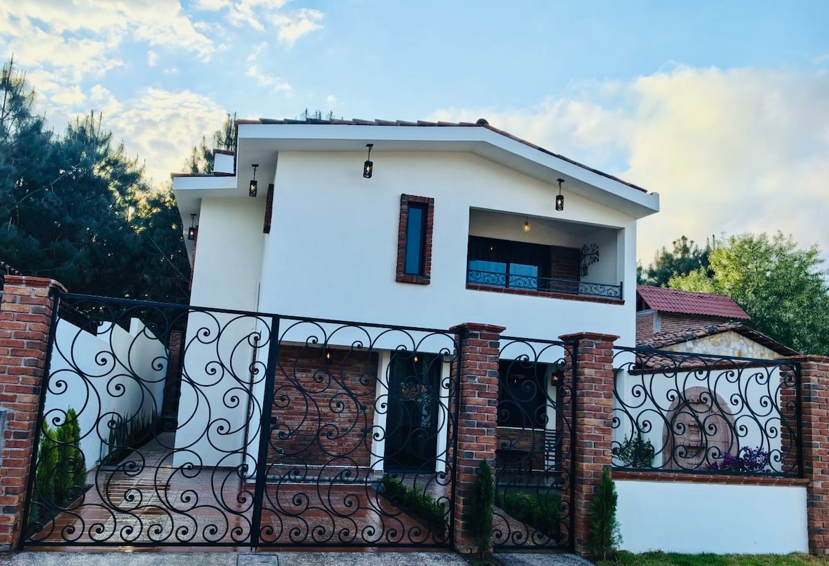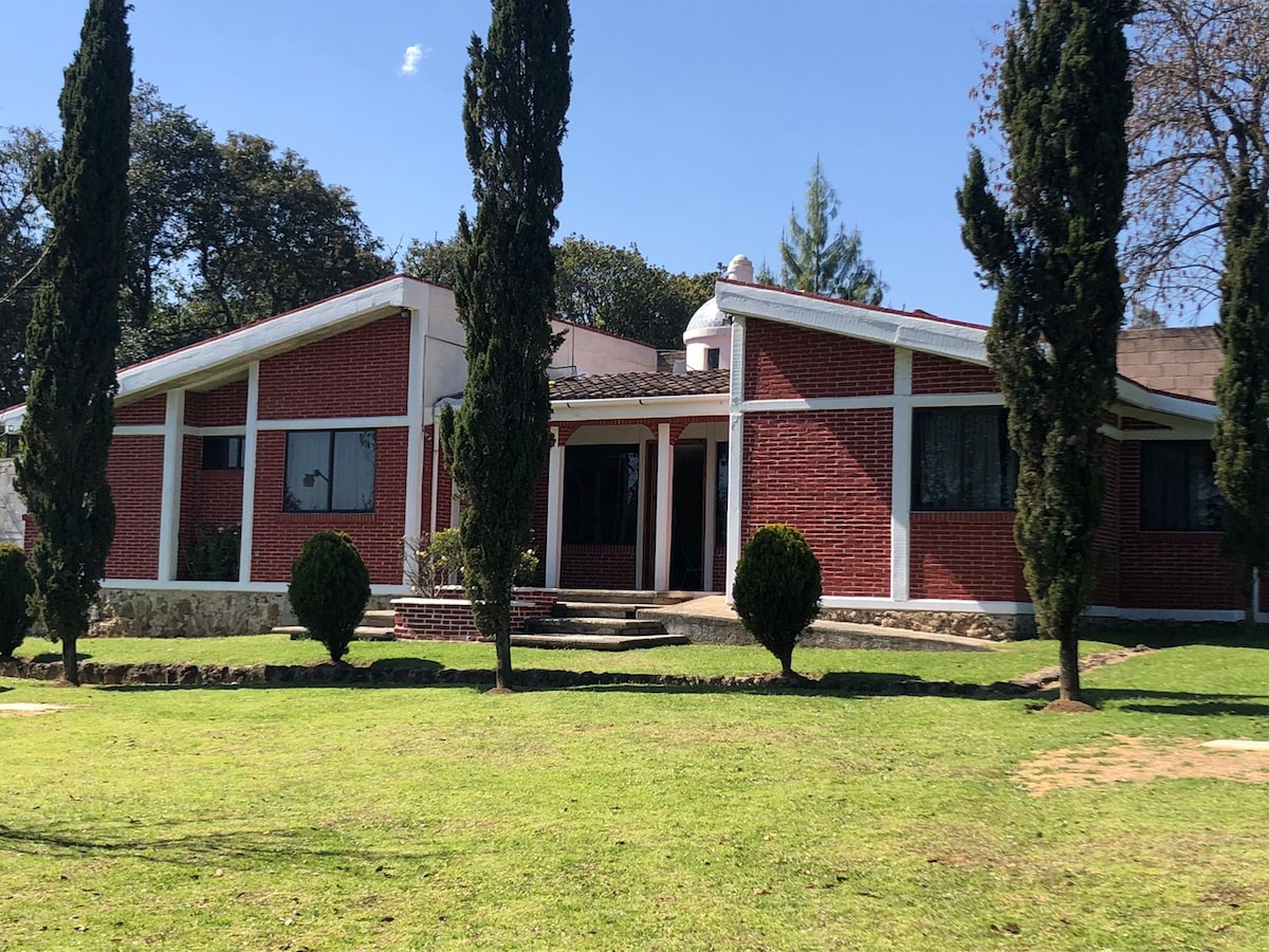 Quinta colonial para disfrutar con la familia con grandes espacios abiertos que ofrecen seguridad y limpieza durante esta pandemia. Confortable casa que conjuga lo rústico con lo moderno y la tranquilidad de la naturaleza. Decorada con artesanía mexicana y poblana. 1,500 metros de jardín, WI-Fi, 4 tv's con cable Localizada a 5 min caminando del centro de Zacatlán.
