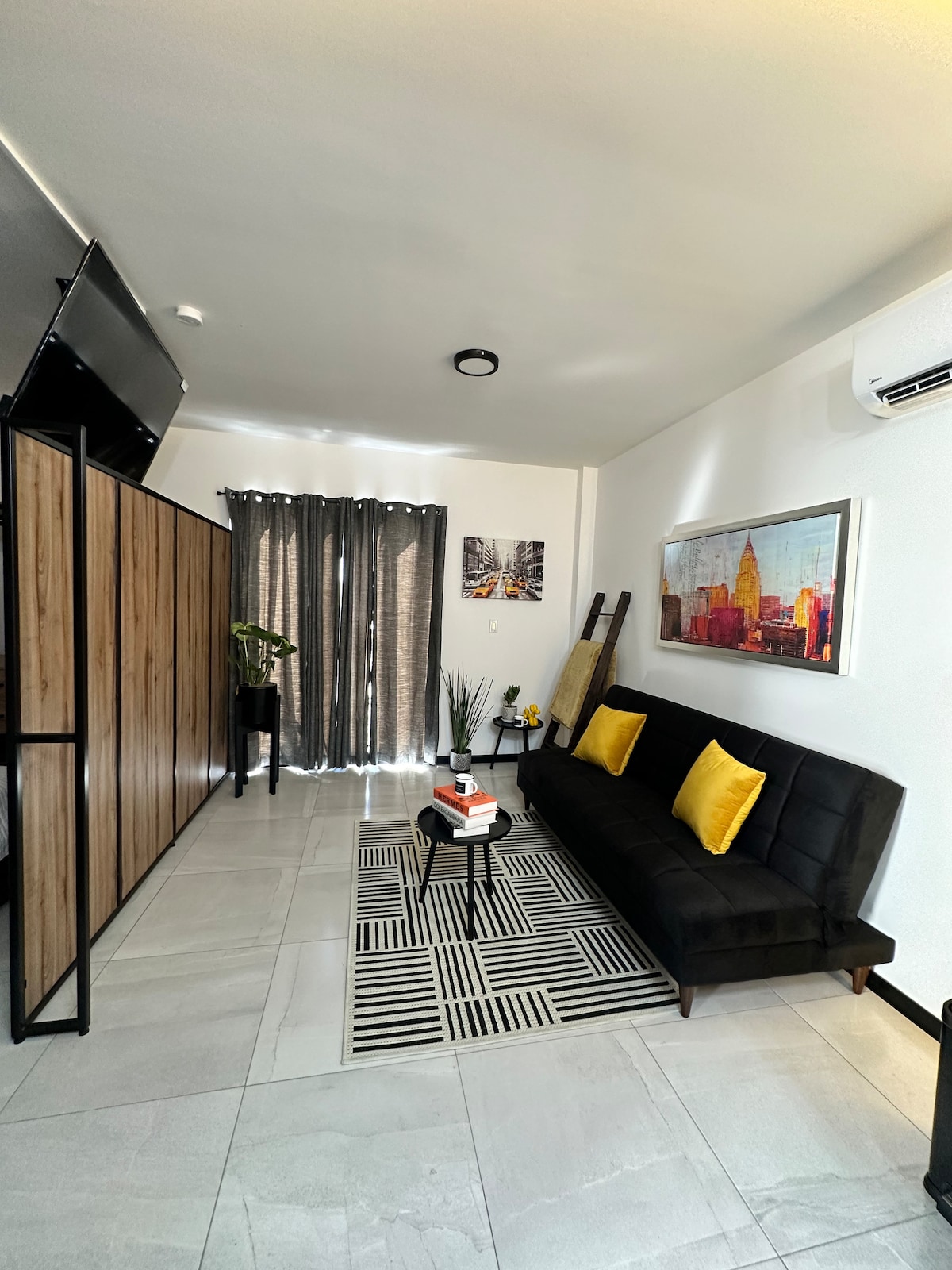 Hermoso departamento en torre ubicada en una de las ¡mejores zonas de la ciudad! Contamos con estacionamiento propio y servicio de Seguridad privada de 7pm a 7am con cámaras de vigilancia, accesos automatizados, área para fumar y elevadores. Estarás a 5 minutos del periférico de la juventud, Fashion Mall, Paseo Central , Distrito 1 y a un costado se encuentra Cotsco, Plaza San Ángel (Restaurantes, Oxxo, Gym, consulado USA) ¡Todo equipado para hacer tu estancia perfecta!