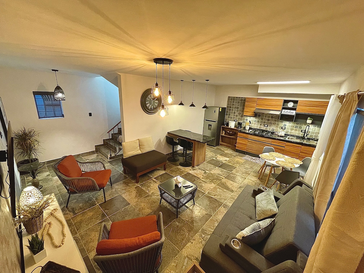 Bienvenido a tu LOFT urbano estilo cabaña! Estamos ubicados en una zona familiar y segura con una excelente ubicación. Envuelvete en nuestros modernos espacios con ese toque rústico y disfruta del clima con una agradable terraza con vista al jardín. El LOFT cuenta con cochera techada, entrada independiente y cámaras de circuito cerrado al exterior. Te encuentras a solo 12 minutos del centro histórico, y a 5 minutos de la zona más moderna de la ciudad Distrito 1.