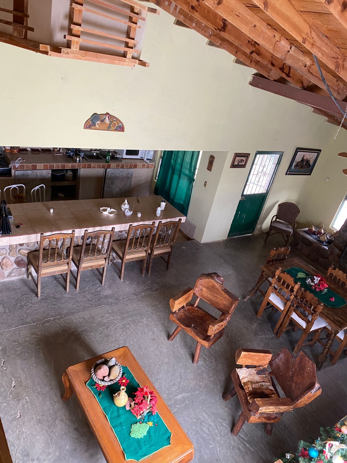 Nos encontramos en la localidad de San Isidro Huajumar, Municipio de Ocampo, a 15 kms (20 minutos) del Parque Nacional Cascada de Basaseachi, en el estado de Chihuahua, México. Dispone de sala, comedor, cocina (estufa, refrigerador, elementos básicos para cocinar como sartenes, platos, vasos, etc), calentón de leña, 2 baños completos (1 con boiler de leña) y 4 recámaras, la 1era con cama king size, la segunda cama matrimonial y las otras 2 en planta alta con matrimonial e individual cada una.
