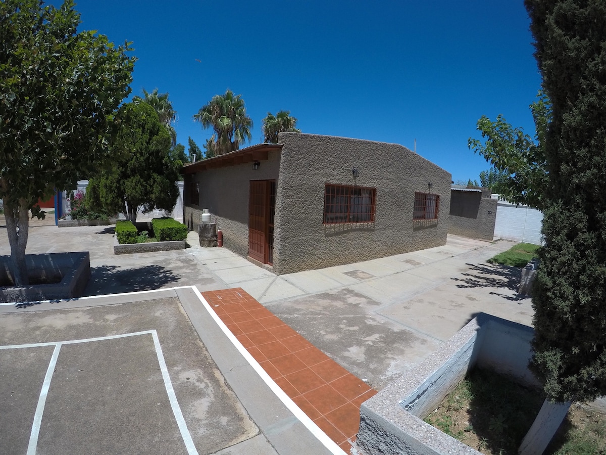 Relájate con toda la familia en este alojamiento donde la tranquilidad se respira. A dos minutos de la zona arqueológica de Paquime, a menos de 3 minutos del temazcal mágico, a menos de 5 minutos de la plaza del pueblo viejo, donde se encuentran varios murales de importantes artistas de la zona, prestigiados a nivel internacional, a 20 minutos de Col. Juárez, a 30 minutos de Mata Ortiz, cuna de ceramistas de talla internacional.
