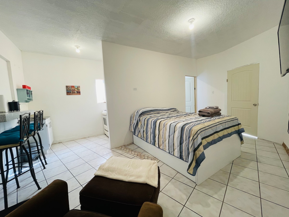 Indulge in relaxation within this SERENEand ELEGANTLY designed CLEAN space. This guest house has everything for a comfortable stay. Unlike comparable establishments, you will not encounter issues with water temperature or temperature fluctuations. The residence has a full equipped kitchen, bathroom, closet, queen-sized bed, and desk. Newly renovated, situated in a secure neighborhood minutes from the US consulate. Private, gated parking for 1 vehicle included, shower essentials are provided