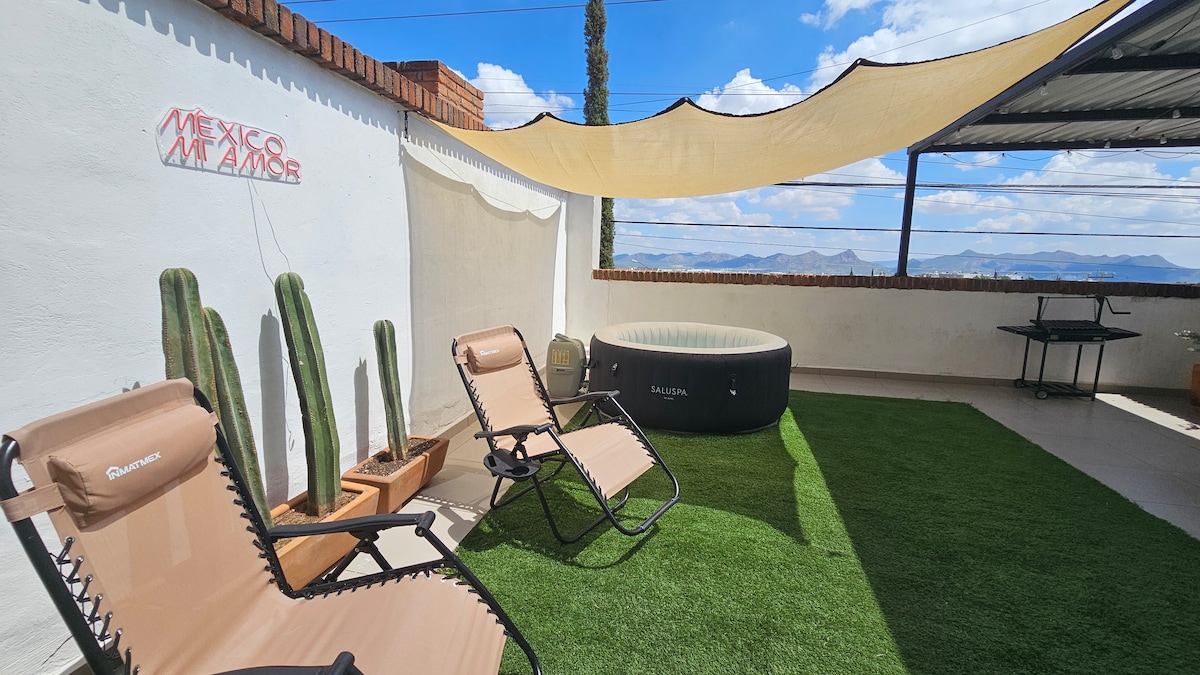 Bienvenido a un espacio diseñado para relajarte. Nuestra casa combina un jacuzzi exterior privado, una ubicación ideal que te conecta con toda la ciudad y una zona de TV cómoda, creando un ambiente perfecto para descansar o trabajar. A minutos de los puntos más importantes de Chihuahua, con acceso a restaurantes, tiendas y avenidas Al volver, podrás disfrutar del jacuzzi, cocinar, o simplemente ver una película en un espacio cómodo. Ideal para parejas, viajes de trabajo y familia.