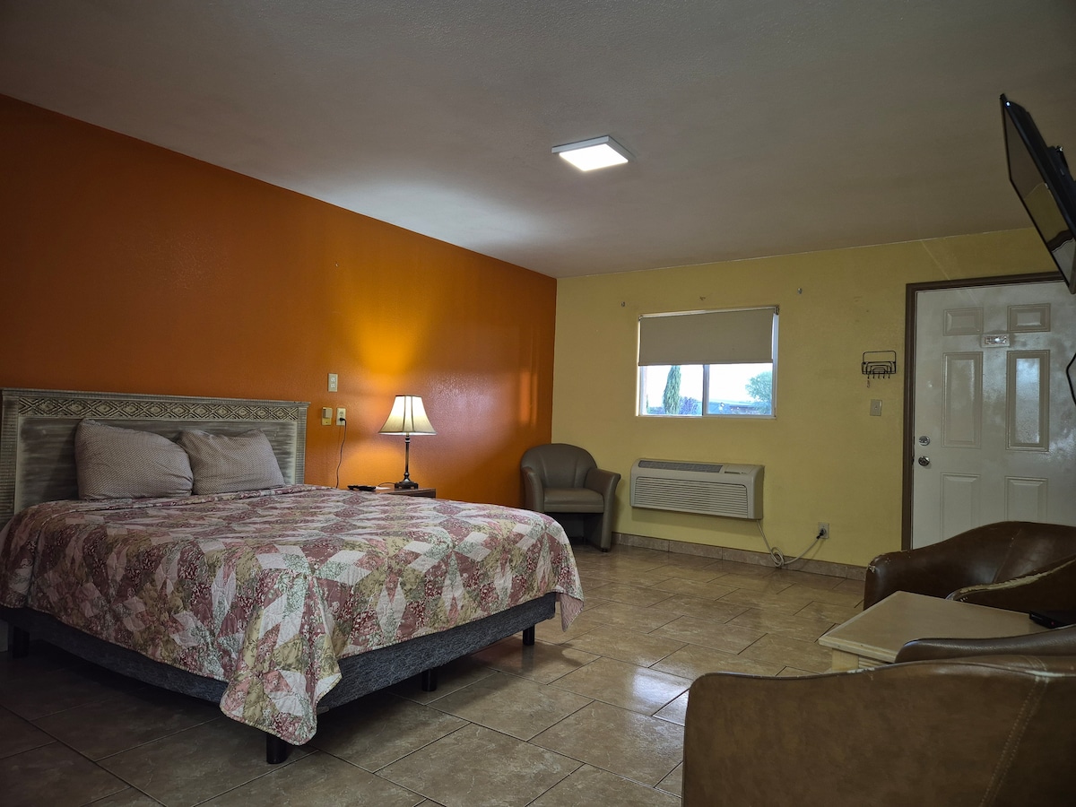 Cuenta con dos camas matrimoniales, smart, minisplit, agua caliente, estacionamiento frente al cuarto . Su ubicación es céntrica y segura , con la ventaja de que esta a 80m de la carretera libre Delicias - Camargo