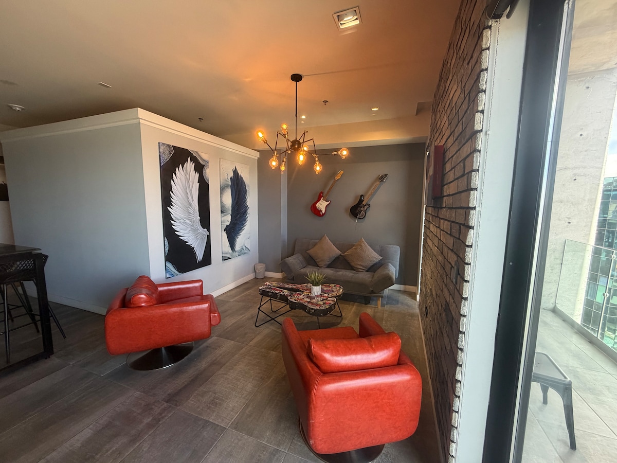 Hermoso Loft Minimalista súper céntrico, frente a la Fiscalía General del Estado y cerca de las oficinas de la Junta de Conciliación y Arbitraje. Disfruta de la sencillez y comodidad de este alojamiento tranquilo y céntrico el cual, además, es amigable con las mascotas. Podrás gozar de una hermosa estación de café la cual te encantará. Automatizado con Alexa (asistente virtual), controlado por comando de voz, para tu mayor comodidad.