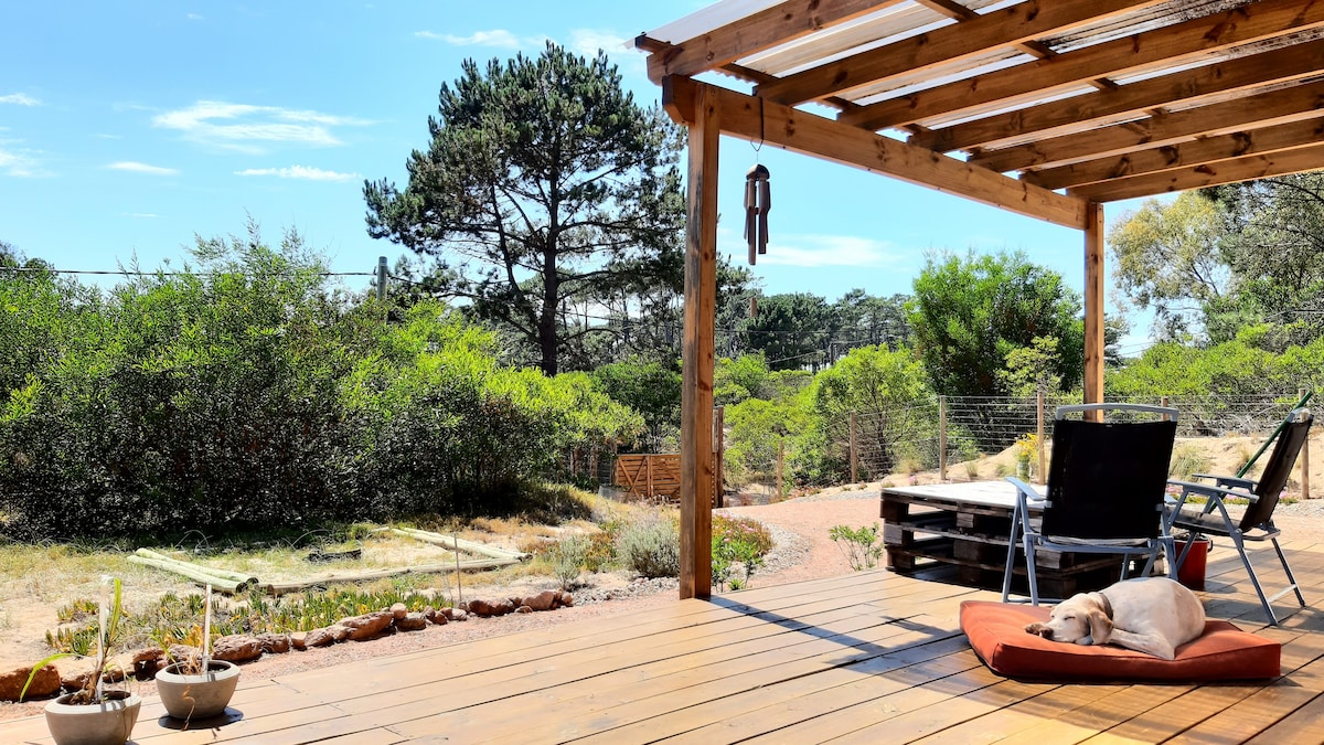 Moana, cabaña a estrenar, construida para integrarse en su totalidad con el entorno, la naturaleza que la rodea y disfrutar de estar en un lugar único con todas las comodidades y confort que se requiere. Tu mascota es bienvenida! Para ella diseñamos su propia puerta de entrada, por lo que siendo un perro de raza pequeña, se puede alojar en Moana!