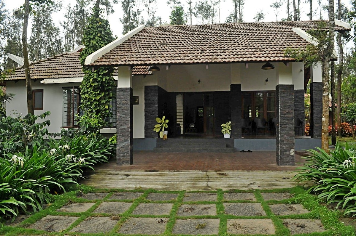 An exclusive retreat nestled in a serene coffee estate, where nature meets comfort. Located just 19 km from Chikmagalur city and a breezy 4.5-hour drive from Bangalore (261 km), our peaceful hideaway is ideal for families, couples, friends, or solo travelers seeking tranquility, fresh air, and unforgettable views. Tucked just 150 meters off the main road, with smooth road access and full mobile network connectivity, our resort lets you escape into nature—without going off-grid. 🌲✨