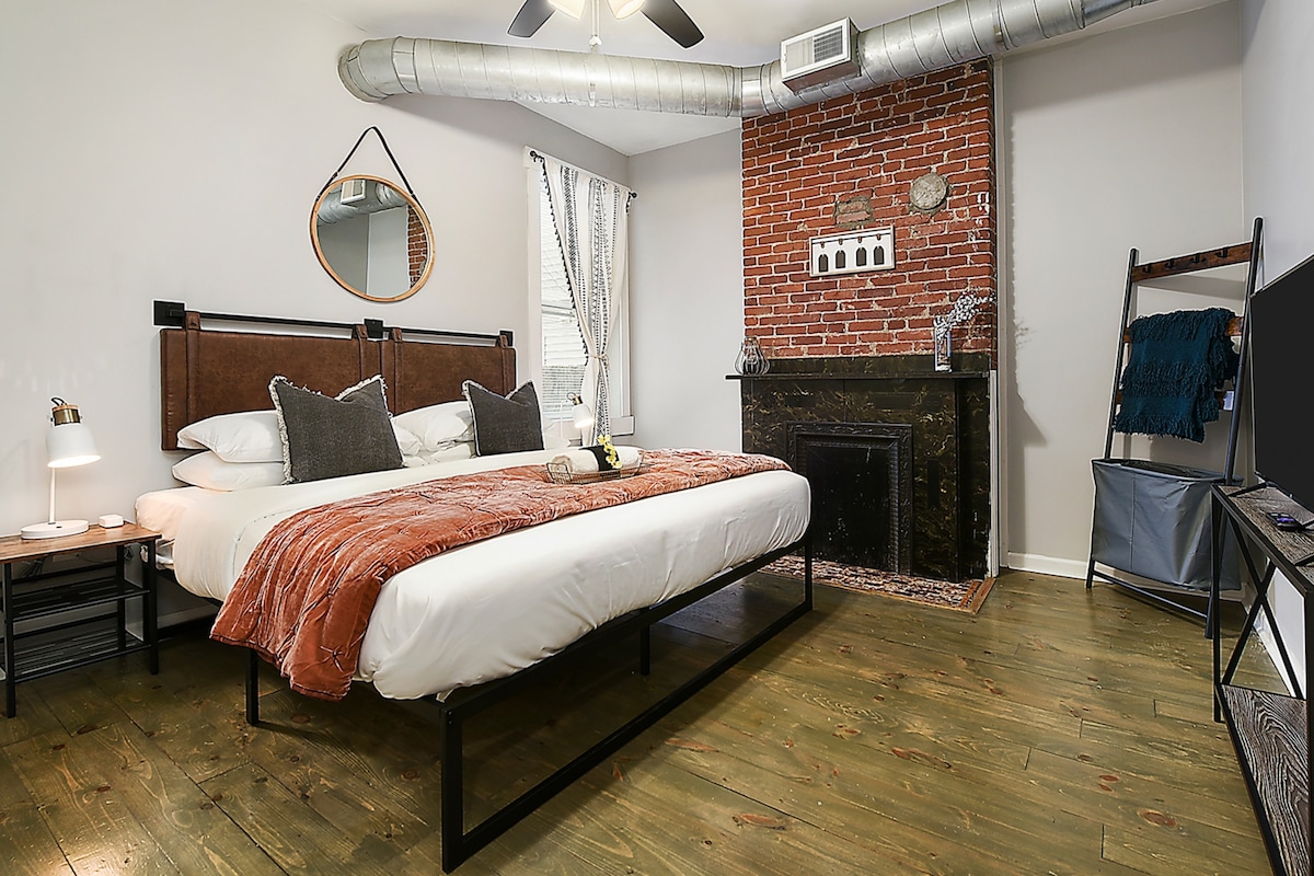 - Experience exposed brick, modern decor, towering ceilings, & ample natural light. - Unwind on the private patio in a cozy neighborhood, steps from lively urban life. - Utilize high-speed WiFi, professional workspaces, and smart home tech seamlessly. - Explore diverse dining, sporting events, and cultural spots within walking distance. - Reserve your unforgettable stay with premium amenities and Chore-Free Checkout!