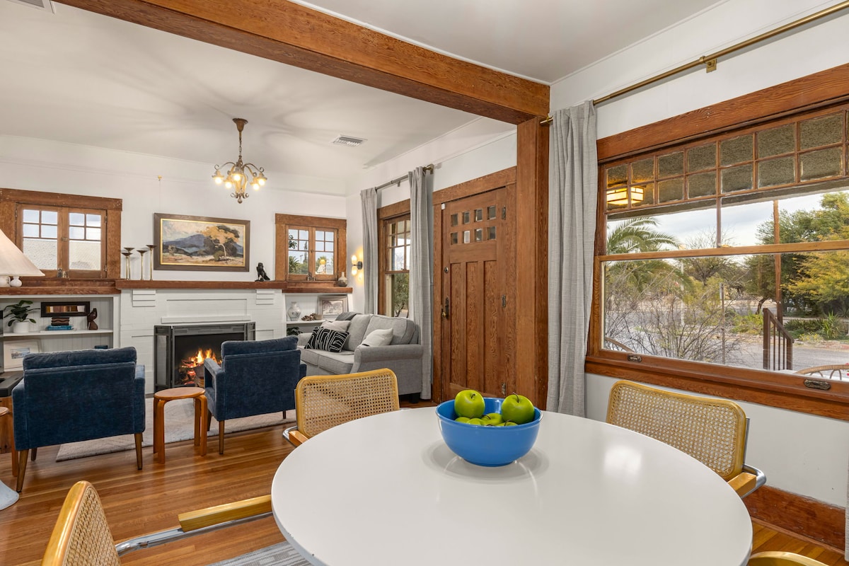 Welcome to our charming 1906 restored home. This beautiful home was divided into 4 private studios years ago. Each studio is a bit different from each other and all have their own living/sleeping/dining spaces, kitchens and bathrooms. While being different, they all still have great character of the period. The studio has high speed WiFi, 50" smart TV, a Keurig and comfy queen bed. We are located just steps from the street car and a half mile from the University of Arizona or Downtown.