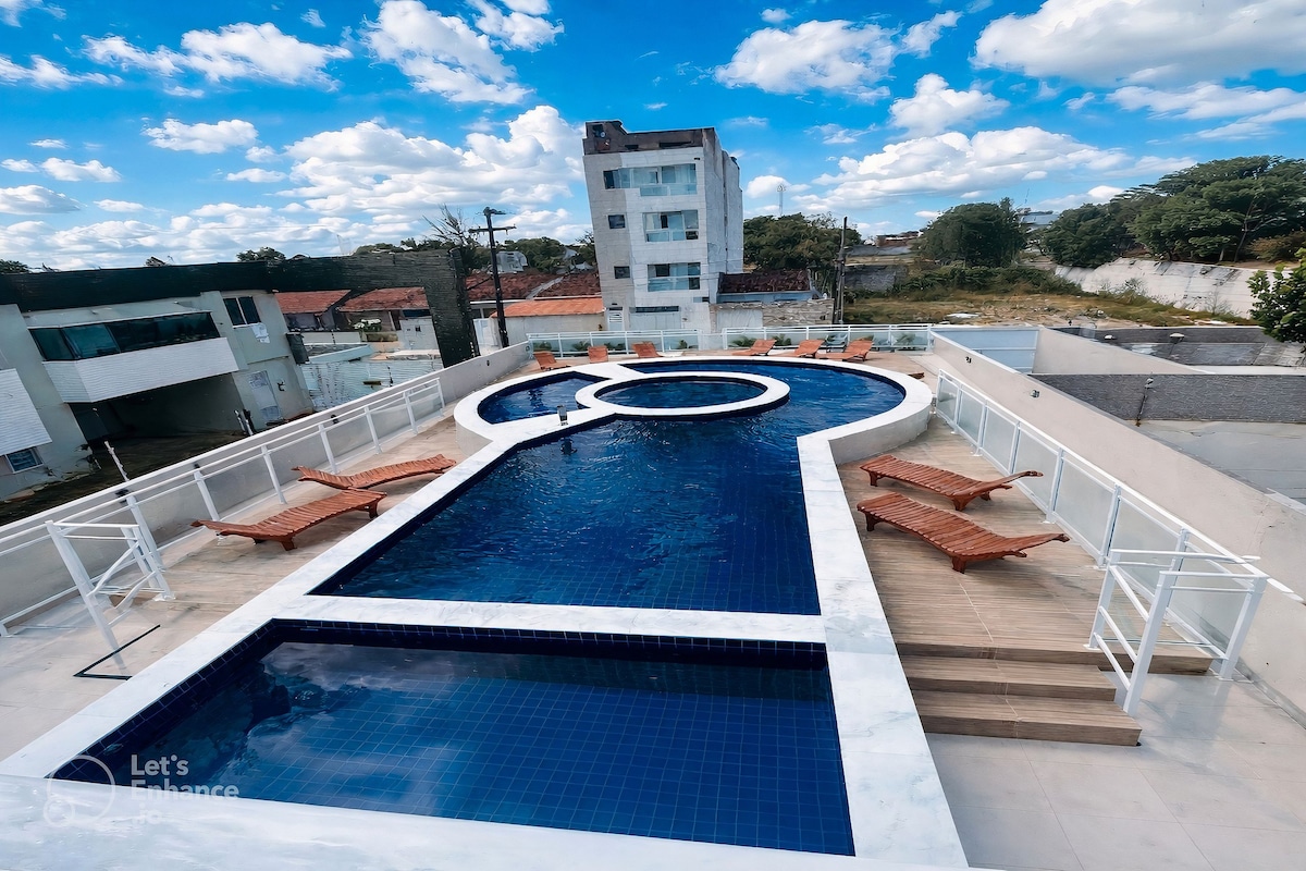 Flat localizado no complexo mais moderno da cidade: Heron Marinho/ Hotel Slavieiro, o mesmo fica a menos de 200 metros do principal shopping da cidade e a 10 minutos do Parque do Povo, custo médio de Uber R$ 10,00. Flat novo com decoração suave e super confortável, O complexo também dispõe de uma moderna e equipada academia de ginástica.