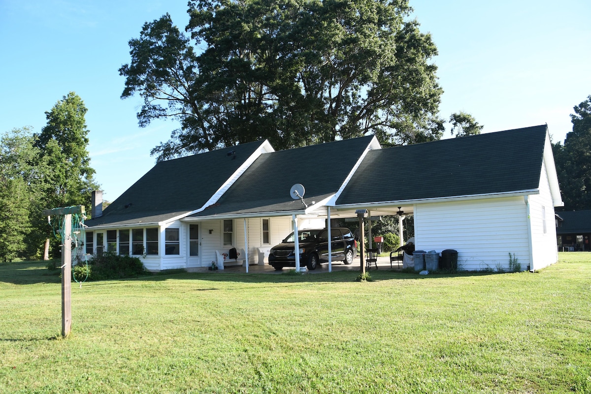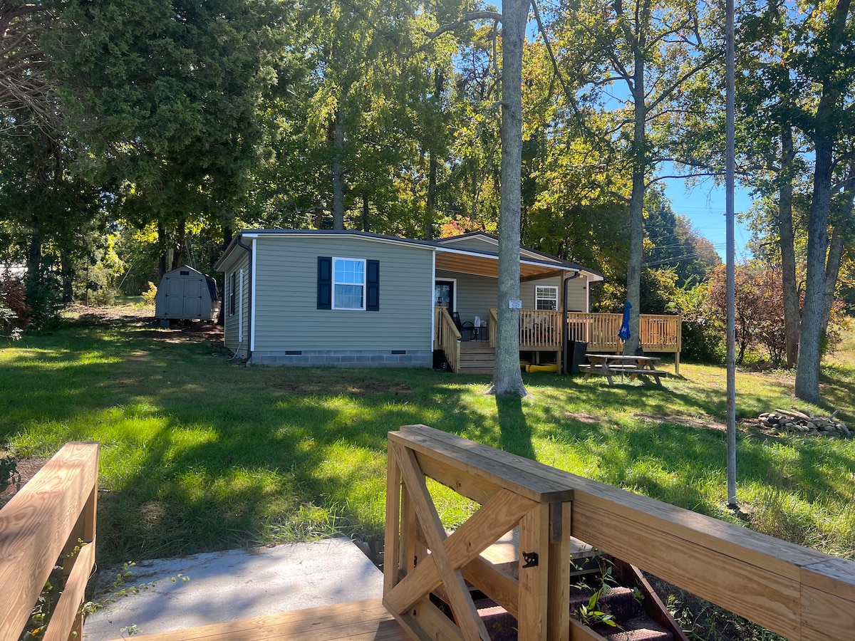 *No Pets* *No large parties* - Private Dock - 3 Kayaks - 7 beds (3 queens, 4 bunks) - 5 TVs (65”, 43”,43”,43”,32”) - 4bedroom / 2bath - Quiet Location - Fire Pit - Charcoal Grill - Picnic Tables - Outdoor Dinning - Huge View Build lasting memories as you kayak, fish, grill out, make s’mores & relax on the lake. Private gravel drive, 10mins from the I-85, 1 hr drive from Charlotte. NCGA Statute 168-4.5: It is unlawful to disguise an animal as a service animal or service animal in training.