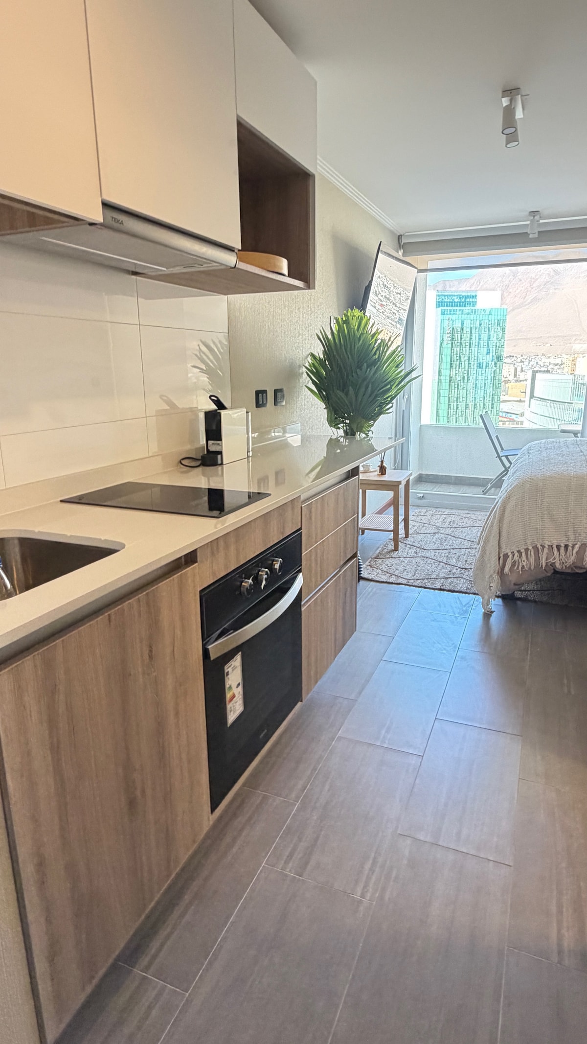 Disfruta de la Descubre tu refugio perfecto en la ciudad. Bienvenido a este luminoso estudio ubicado en un encantador piso alto. ¡Disfruta de unas vistas impresionantes de la ciudad y siente la brisa marina! A solo minutos de la playa, podrás relajarte en la arena. La ubicación es inmejorable: estás rodeado de una gran variedad de restaurantes, supermercados y farmacias. El departamento está diseñado para brindarte comodidad, acogedor y un ambiente moderno.