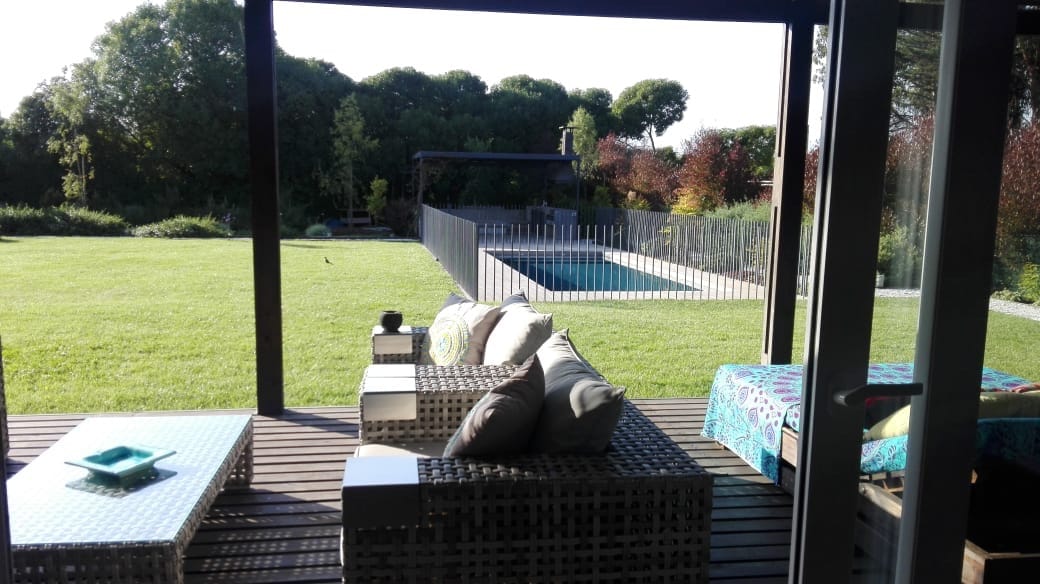 Ubicada a la entrada de la ciudad muy cerquita de la Ruta 5 Sur, sector muy tranquilo, con amplio espacio para estacionar a poco más de 2 kl de grandes supermercados, bencineras , a 20 min. del Salto del Laja. Cuenta con 2 dormitorios, cama 2 plazas, 1 cama de una plaza y una litera, dos baños completos principal en suite, amplia sala, sofá amplio y cocina.Los anfitriones viven al frente. Esperamos en el ingreso al recinto si es de noche para hacer mas expedita su llegada