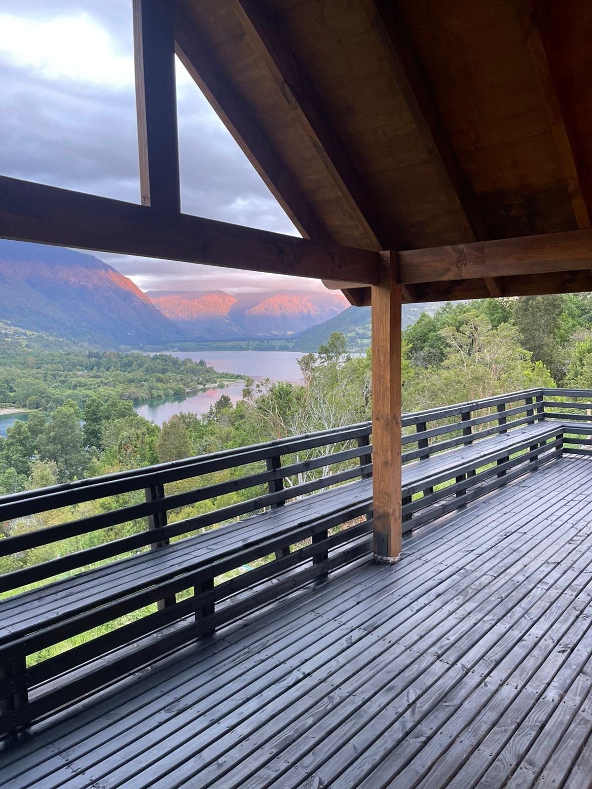 The cabin has a natural feel and rustic touch within amazing surroundings of the native forest and trees all around you. The cabin has been built with native and sustainable wood. it is well equipped. Is very cute and cozy space with a large veranda with an outdoor seating. There is a nice river with access within the property with a picnic table next to it to enjoy listening the river. Big sunny green garden, picnic table to enjoy the view of the mountains, a fire-pit and couple of hammocks.