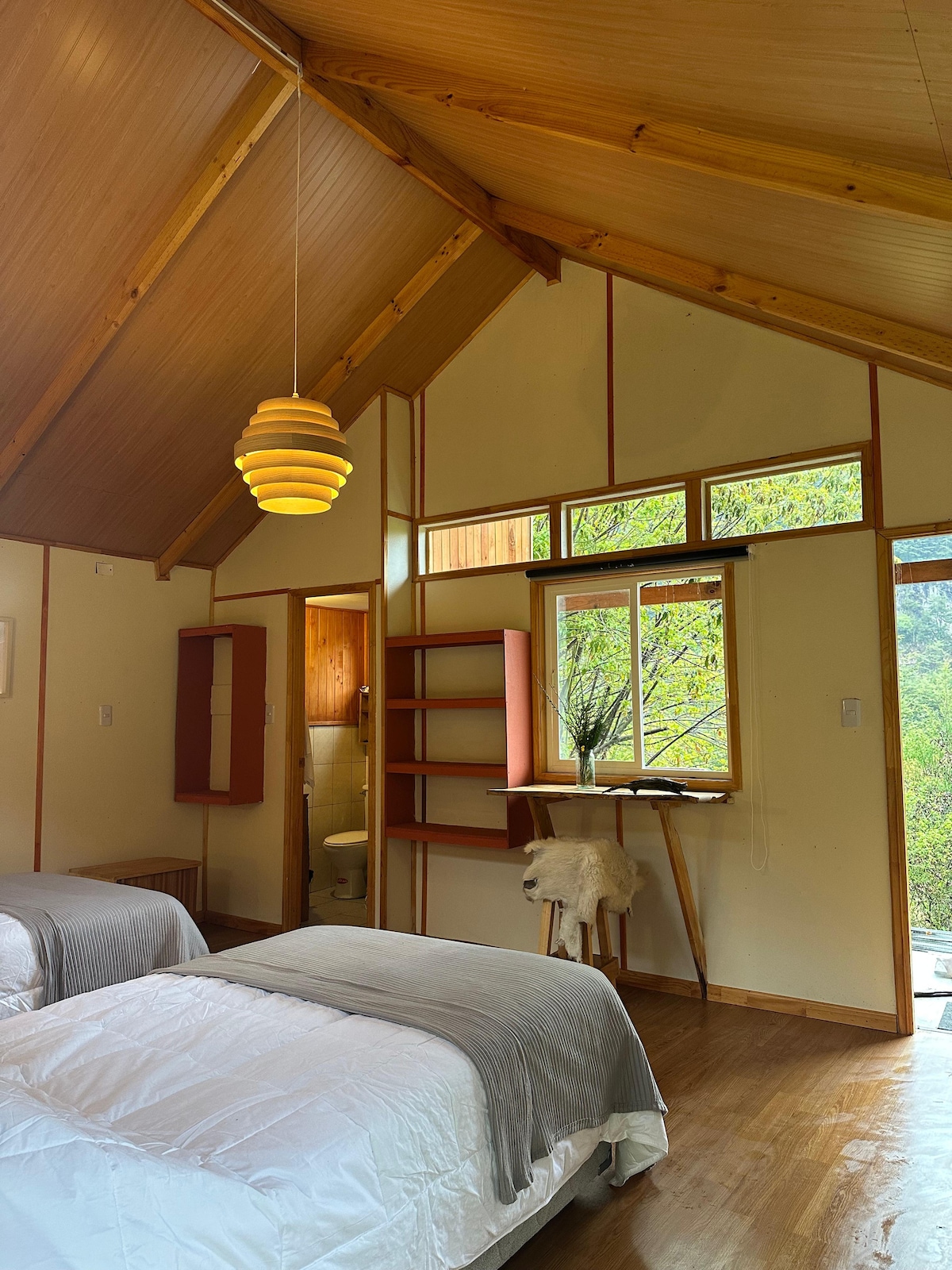 Cabaña completamente equipada , ideal para que nuestros pasajeros descansen y repongan energías, se les proporciona juegos de sabanas, la cabaña tiene cocina, calefont, Loza, cuchilleria, y todo lo que necesite.