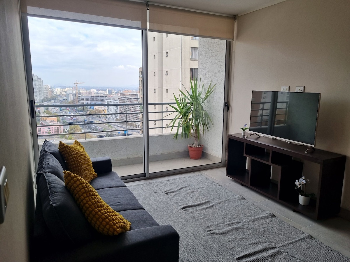 Apartamento ubicado muy cerca de varias estaciones de metro, Santa Ana, Plaza de Armas, Moneda. Podrás recorrer el centro histórico de Santiago caminando si lo deseas. Encontrarás cafeterías, supermercado, Minimarket, banco, un pequeño mall, todo cerca! Cuenta con una habitación con cama doble, walking closet, baño completo, living, terraza, cocina americana equipada con encimera, horno, campana, microondas. Mobiliario y artefactos nuevos. Te espero, ¡que disfrutes tu estadía!