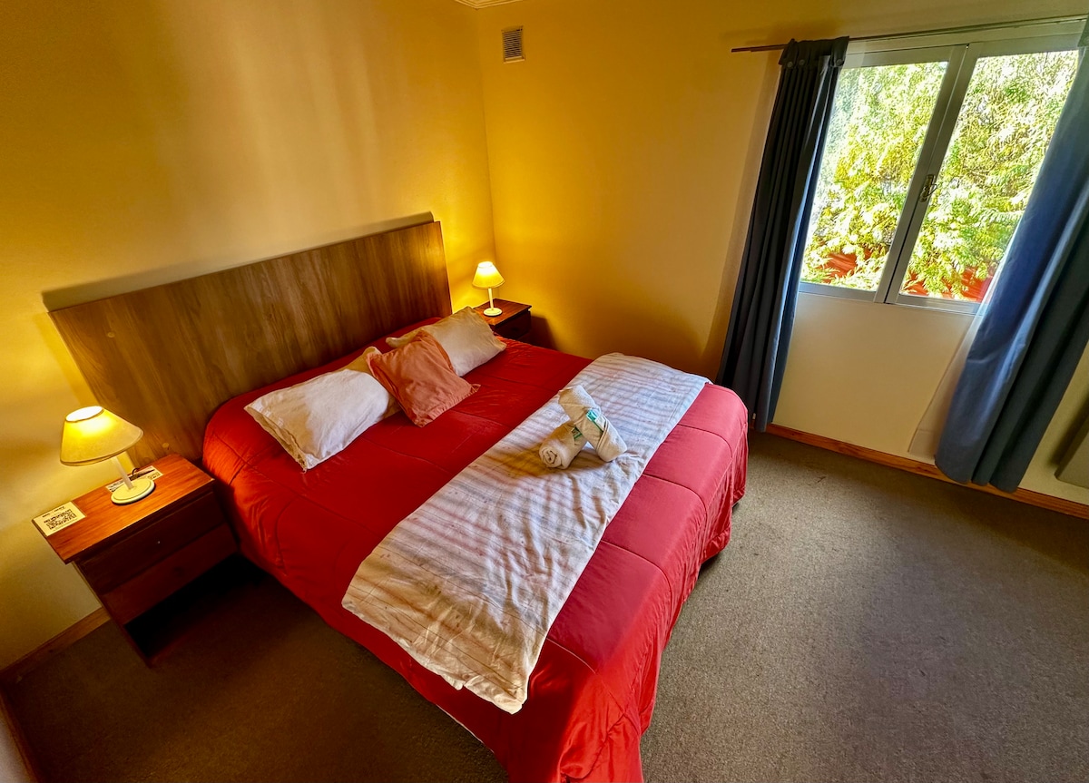 Habitación doble con baño privado en Hostal Lili Patagónico's. Ubicados cerca del Parque Nacional Torres del Paine, ofrecemos comodidad y un ambiente acogedor. Incluye desayuno buffet, Wi-Fi gratuito, calefacción y toallas. Disfruta de cocina completa, muro de escalada y más. También alquilamos equipo de camping y ofrecemos excursiones. Además, contamos con servicio de lavandería y custodia gratuita. Ideal para tus aventuras en Patagonia. Te esperamos.