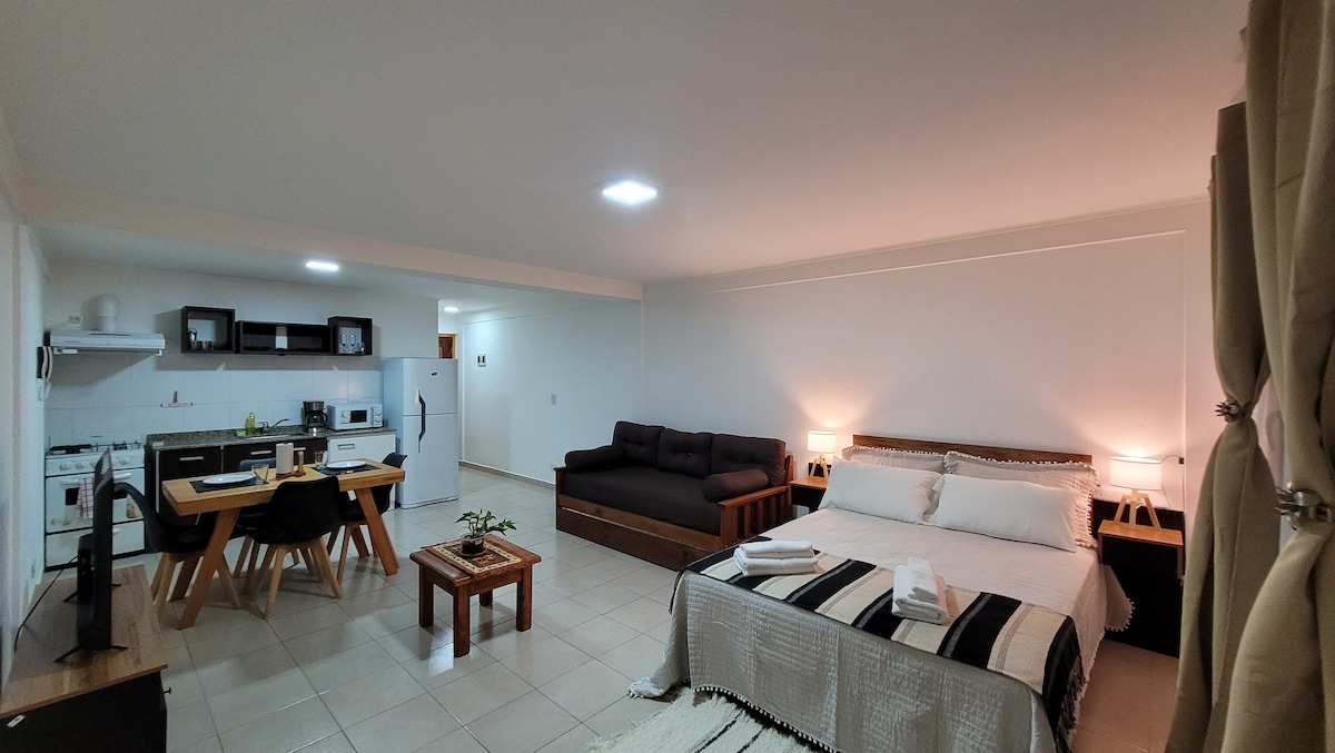 Loft en el centro de la ciudad, conectado directamente con taxi, buses y colectivos. Que te llevarán donde quieras de manera muy rápida. Estamos a 600 metros de la costanera, casino, restaurant, plaza de armas de Punta Arenas. Y el mismo centro a 3 cuadras. Sector muy seguro para transitar tanto de día como de noche. Televisión smart y wifi a toda hora. El loft cuenta con cocina americana equipada y baño.
