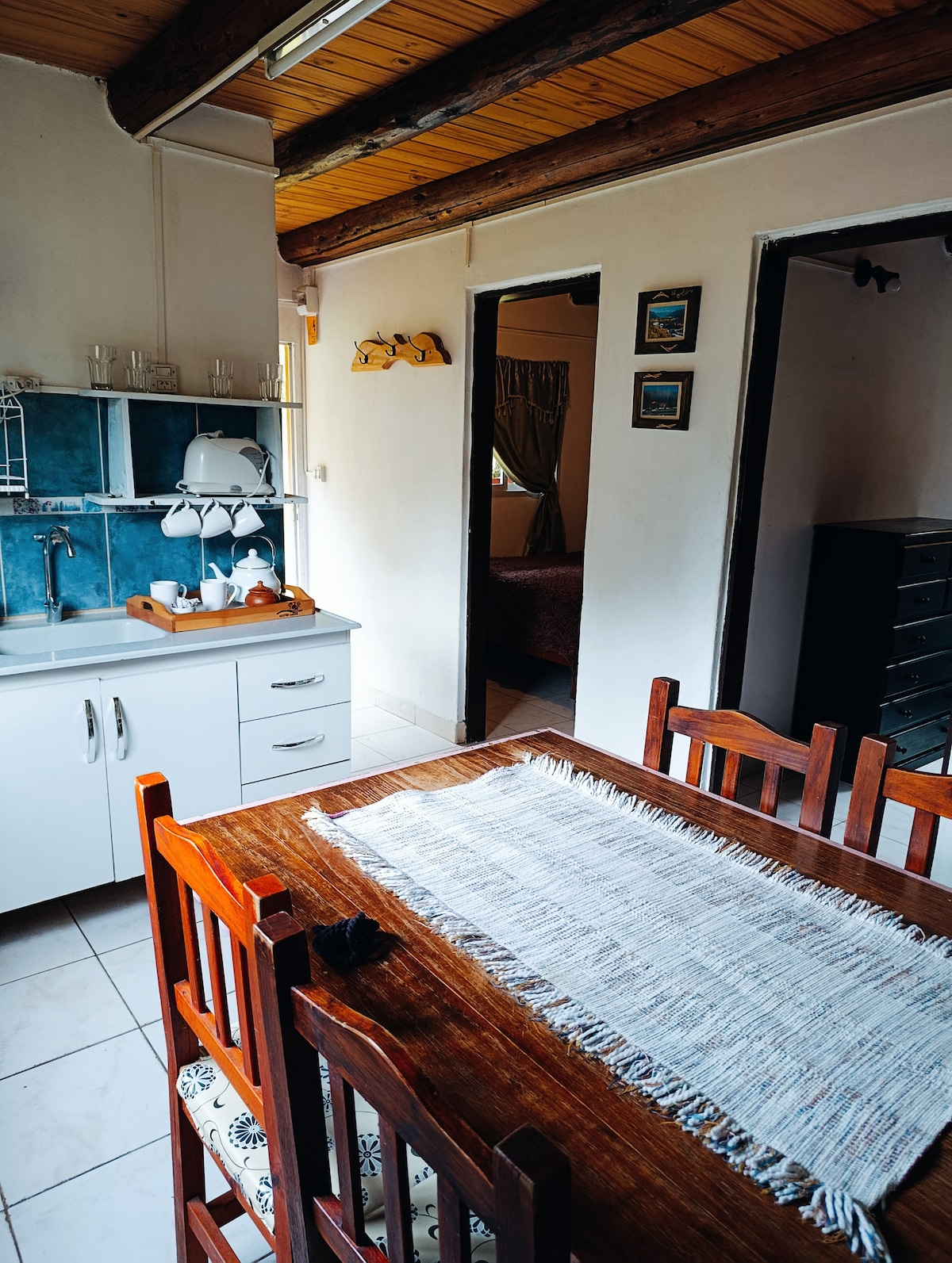 Cabaña de montaña, que consta de 1 ambiente en planta baja con cocina-comedor, equipado con heladera, anafe a gas, horno eléctrico, jarra eléctrica y vajilla para 4 personas. El baño ubicado en planta baja tiene ducha con mampara. En este ambiente hay un futón cama donde pueden dormir dos personas, y en la buhardilla que está alfombrada hay dos camas sommier individuales que pueden unir sus colchones y convertirse en cama matrimonial.