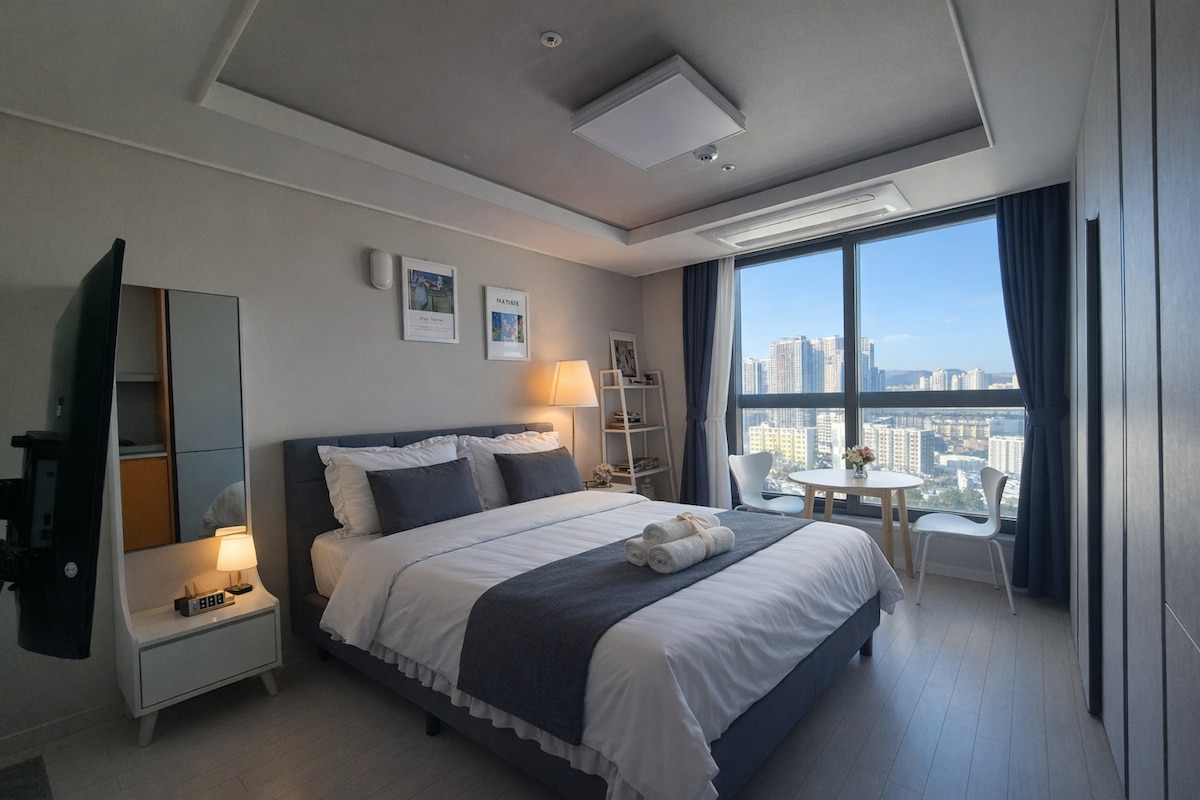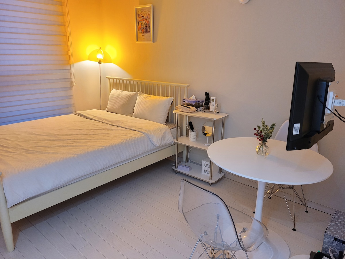 숙소 설명 ✅꼭 필독✅해 주시고 이용해 주세요!! ❤️"잠자리"라는 기본에 가장 충실하려고 "노력"한 공간입니다! ✅숙소 옵션✅ -삼성 스마트 TV -초고속 wifi지원 -삼성 시스템 에어컨 -삼성 스타일러 -드럼 세탁기 -일리 커피머신기(캡슐제공) -전기 포트기 -전자레인지 ✅숙소 주방 옵션✅ -인덕션 2구 -머그잔/와인잔 -접시 2개 -냄비 1개(중) -조리도구(국자,칼,가위) -수저셋트 저희 숙소는 간단한 조리만(라면) 가능하세용 참고해 주세요! (❌삼겹살,스테이크,국,찌개류,파스타❌) ✅화장실/샤워실 옵션✅ -핸드워시 -칫솔,치약 -폼클렌징, 클렌징 오일 -샴푸/컨디셔너/바디워시 -바디로션 -화장솜,면봉