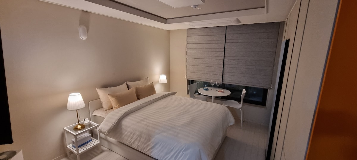 It's a clean and pretty new building with cozy rooms. Daegu Airport, Exco, and Dongdaegu Station are nearby, so this is a good place for business trips and trips. Dongchon Station, subway line No. 1, is three minutes' walk away, and you can go to Dongchon amusement park.