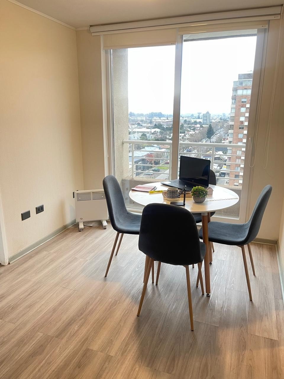 Hermoso departamento nuevo equipado para 2 hasta 3 personas, ubicado a pasos de supermercados, bancos y mall de Chillán, el cual cuenta con las siguientes características: ● 46 M² ● 1 Habitación (cama 2 plazas) ● 1 baño ● Living (sofá cama 2 plazas) ● Cocina full equipada ● Calefactores de bajo consumo ● Ventanas de termopanel ● Estacionamiento ● Wifi ● TV cable Vista a Nevados de Chillán Áreas comunes: □ Gimnasio □ Coworking □ Quincho □ Lavandería □ Acceso controlado 24/7