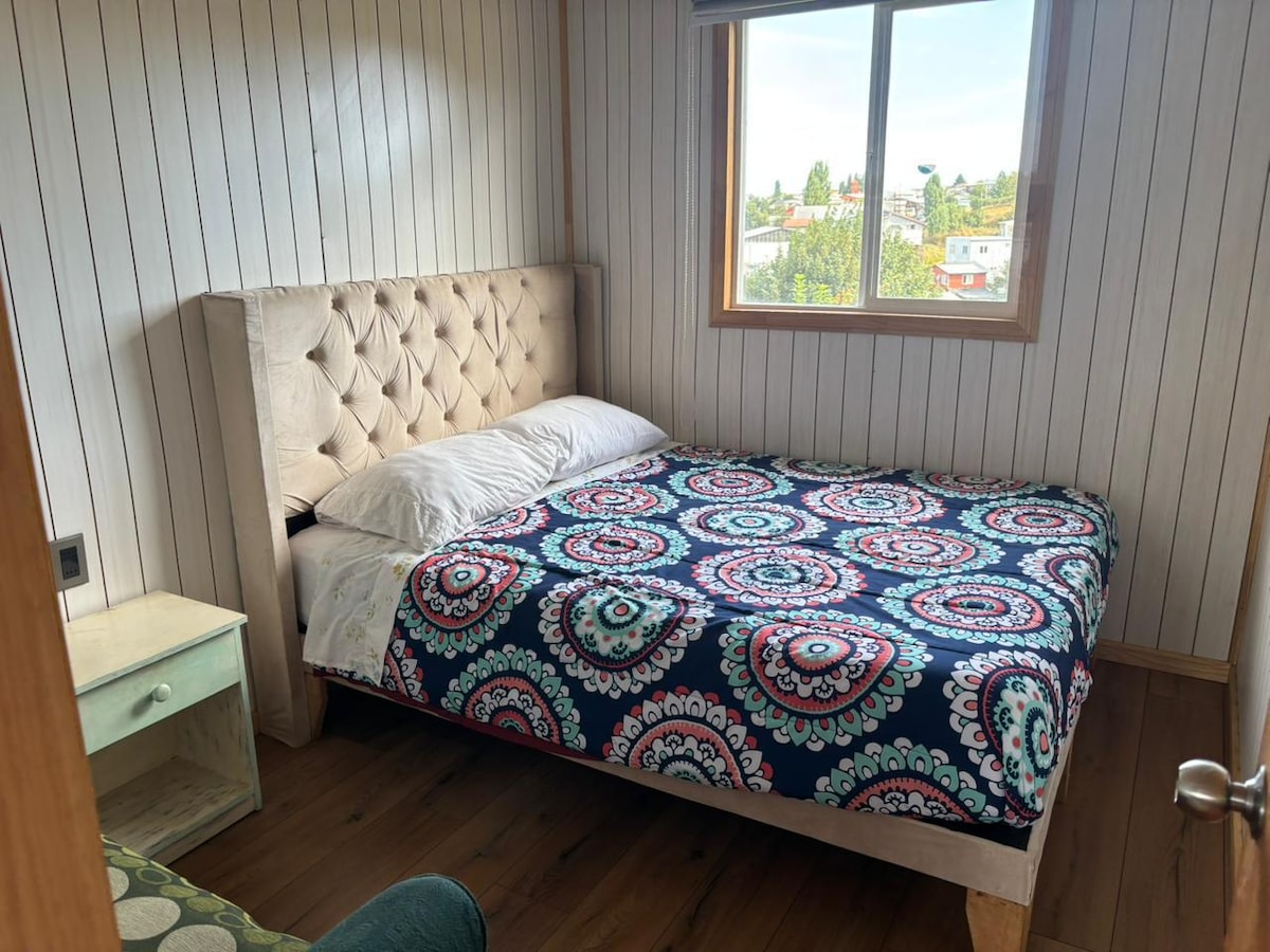 Hermosa cabaña nueva ubicada en pleno centro de Castro en la capital de Chiloé. Espacio acogedor con entrada independiente, se encuentra totalmente equipada a solo 1 cuadra de supermercados, terminales de buses, plaza, iglesia, hospital, estadio, gimnasio y principales arterias de la ciudad. Cuenta con una habitación con cama matrimonial, cama extra en altillo y 1 baño. Ideal para parejas o viajes de trabajo. Posee calefacción, frigobar y cocina.