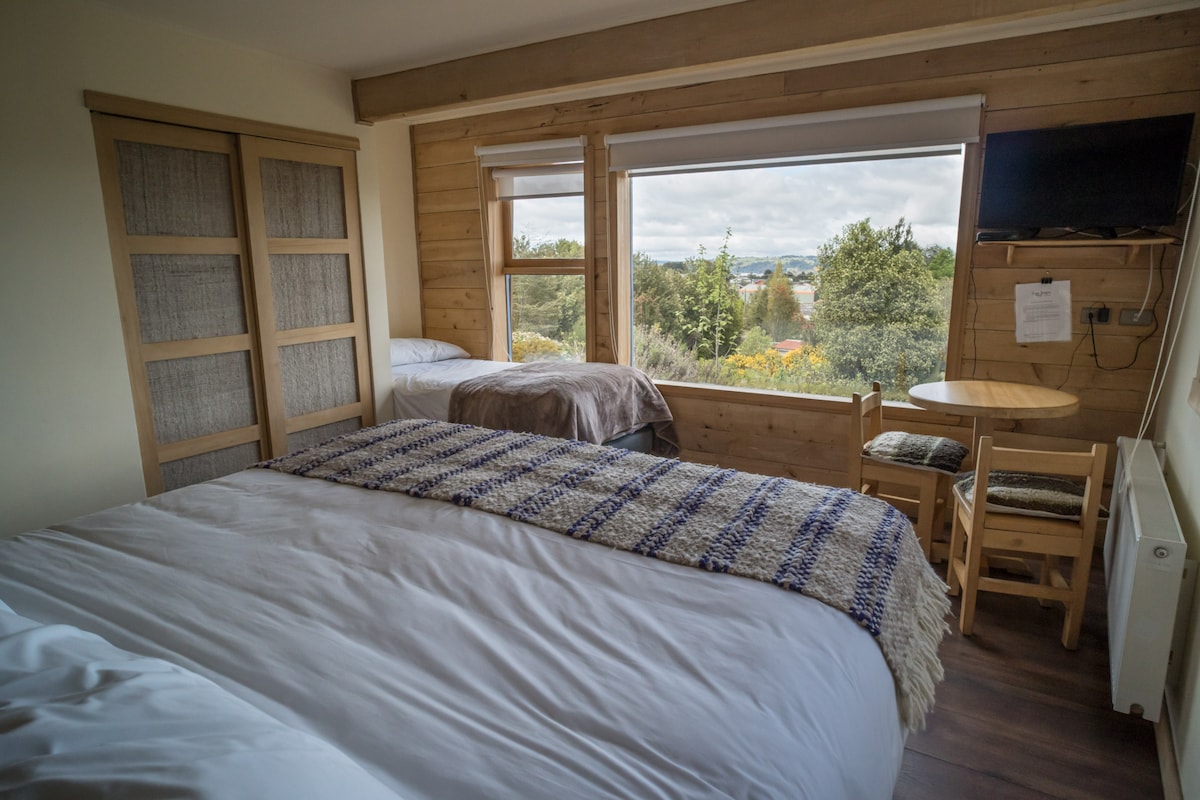 En el sector bajo del campo a un costado de nuestro fogón, rodeado de gallinas, árboles frutales y ovejas encontramos nuestro Lodge Chilote, cuenta con 4 habitaciones, todas con baño privado. Fue la casa de los antiguos dueños de la propiedad, restaurada y equipada con todas las comodidades necesarias para recibir grupos entre 6 a 8 personas. Ofrece un ambiente más hogareño y una amplia terraza con vistas hacia el Fiordo y ciudad de Castro, ideal para familias o grupos de amigos.