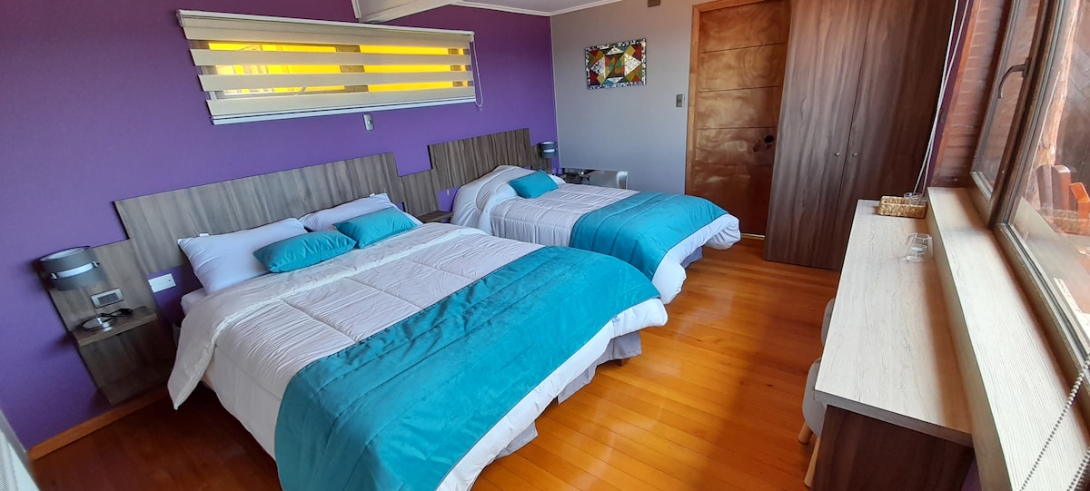 habitación privada con entrada independiente, equipada con hervidor y microondas y loza, ademas ofrecemos te y cafe gratis, ideal para 2 personas pero puede quedarse una tercera persona en el sofa cama ubicacion central a unos 300 mts de la plaza de castro, iglesia de castro, podras ir a pie a las principales zonas de interes, cuentas con supermercado y terminal de buses cercano, mall (400 mts) perfecto para personas que viajan por trabajo o turismo hostal plaza chiloe, te esperamos