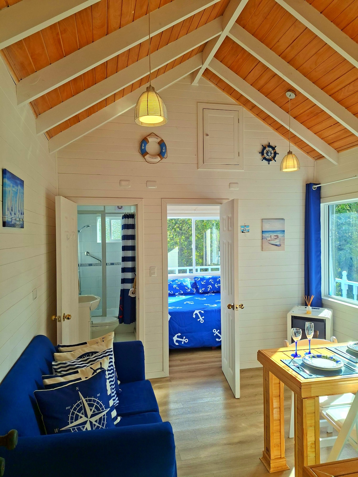 Vendrás a un alojamiento tipo boutique temático estilo "tiny house" con ambientación náutica en medio de la naturaleza y frente al lago, donde podrás disfrutar de excursiones nauticas de modalidad diurna y nocturna incluidas en la estadía, para una completa conexión con la naturaleza. La estancia busca ser una experiencia destinada idealmente para quienes buscan naturaleza, desconexión y aventura. La estadía brinda un servicio y una experiencia 100% personalizada y adaptada para cada huésped.