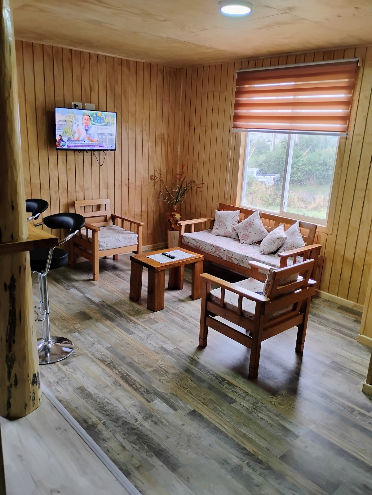 Cabañas nuevas y equipadas completamente, la cual tiene la comodidad necesaria para descansar y conocer la isla, ubicada en el corazón de chiloe, cuenta con una vista maravillosa y espectacular hacia la cordillera de los andes y archipiélago de chiloe. También zonas cercanas para trekking, running, nadar, andar en bicicleta y kayak.