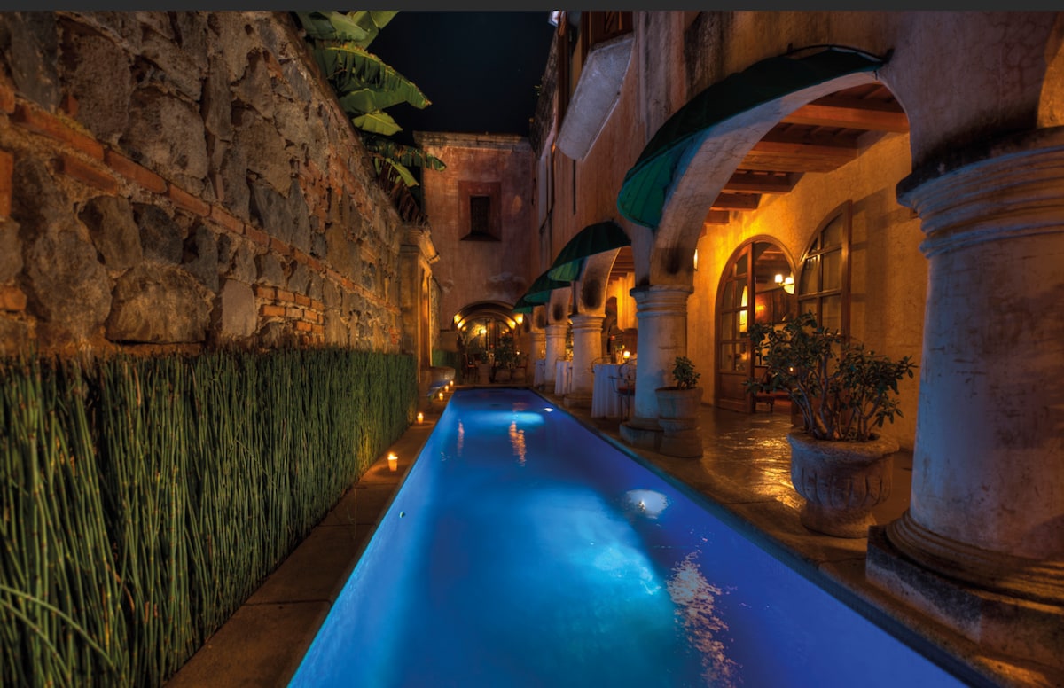 Villa Estate NEW: Free transportation from Central Park Antigua to Jardin Casa La Historia Located in San Pedro Las Huertas away from the tourist bustle & noise of Antigua but still a short 10 minutes drive from there. This garden estate hosting marvelous pieces of art, history & roaming peacocks is unique luxury property w/ 360* VOLCANO views w/ a otudoor pool & Hot tub-Jacuzzi where a traditional breakfast is also offered for $5 - Perfection (All Listings) airbnbcom/users/12433164/listings