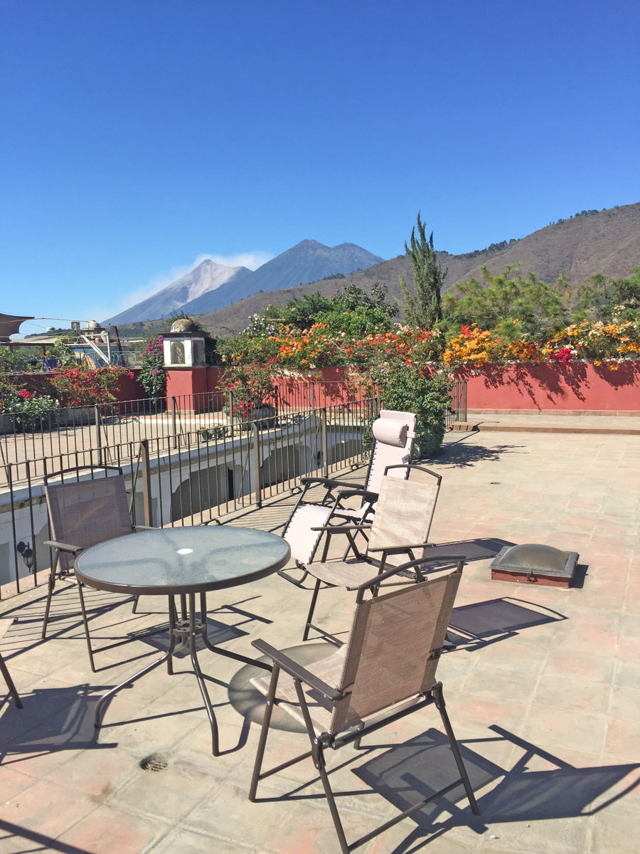 Your home in Antigua, with a view of all three volcanoes. 2 bedrooms, 2 baths. 90 m2 living space, plus 140 m2 rooftop with views of volcanoes. Full kitchen, dining room with expanding table, living room with a fireplace. a private 34 m2 patio with a view of Volcano Agua. My wife and I have travelled around the world with airbnb. Some hosts have made us really welcome. I will do that for you here. I have good reviews on Airbnb for my 4 apartments in this building.