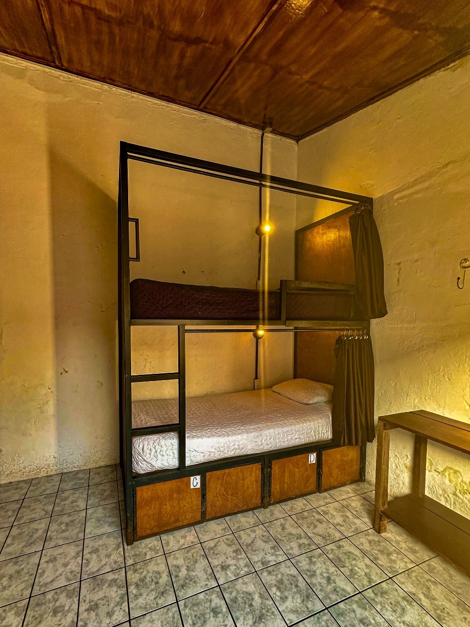We offer shared rooms with capsule-style beds: spacious, comfortable, and designed for privacy. Each bed comes with curtains, a personal reading light, and individual power outlets — everything you need in your own cozy space. A functional setup that combines comfort, privacy, and convenience at an affordable price.