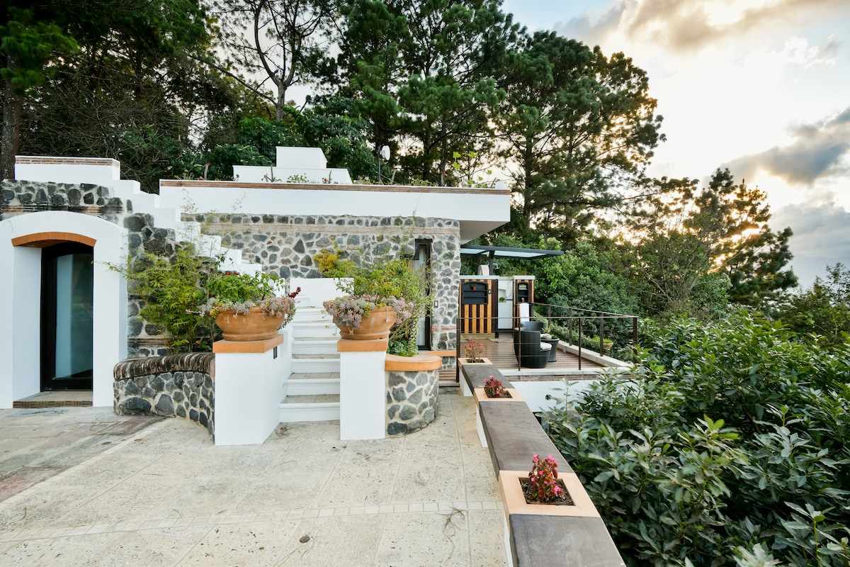 Welcome to the Pyramid House at Campanario Estate, nestled in the mountains above Antigua Guatemala. This serene retreat features a pyramid-shaped bedroom with a queen bed and ensuite bathroom, a modern kitchen, and a cozy living area with stunning mountain views. Enjoy 7 km of hiking trails and beautifully landscaped gardens. Discover the vibrant city of Antigua just a short drive away. Experience luxury and nature seamlessly blended at the Pyramid House. Book your stay today!