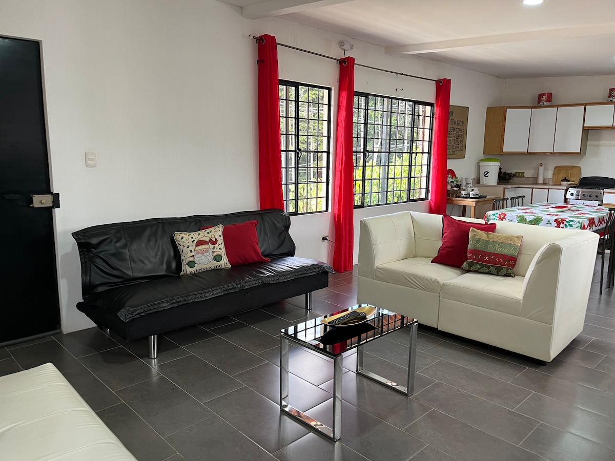 Relájate con toda la familia en este rinconcito de La Antigua Guatemala, a 2 cuadras del parque San Sebastián. El apartamento cuenta con 2 camas full y 1 sofa cama full, pergola exterior con hamacas, parqueo y jardines amplios.