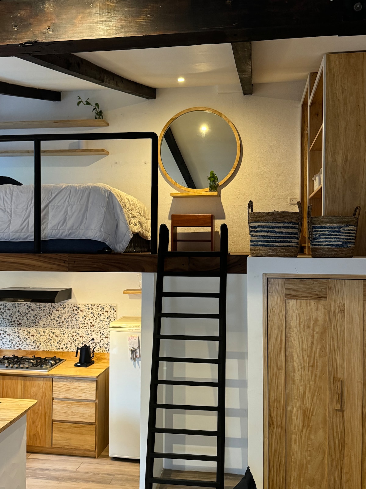 Stay in the heart of Antigua in this cozy and stylish tiny house, perfect for minimalist travelers. The mezzanine bedroom is snug and restful—just watch your head going up! Enjoy a fully equipped kitchenette, a compact bathroom with hot water, and a multifunctional living and dining area. Located steps from Antigua’s main attractions, it’s the perfect base for exploring the city. This unique, efficient space offers comfort, charm, and an unforgettable tiny house experience (Do not have parking)