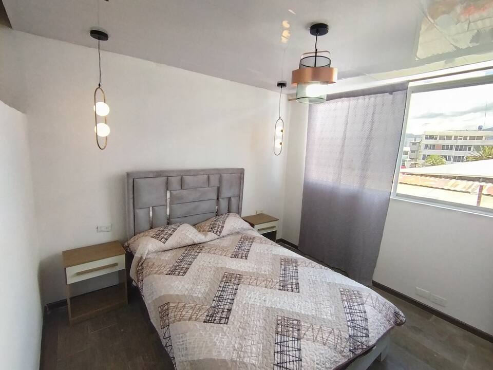 Escapada romántica en Riobamba con jacuzzi privado Ten una experiencia única en esta habitación especialmente diseñada para parejas. Cuenta con jacuzzi privado dentro de la habitación, vista a la ciudad y una decoración elegante y moderna, con todo totalmente nuevo para tu comodidad. Ubicada cerca de la mejor zona de Riobamba, es el espacio perfecto para desconectarse, compartir un momento especial y vivir una estadía íntima e inolvidable. Ideal para egalarse un rato ameno para dos.