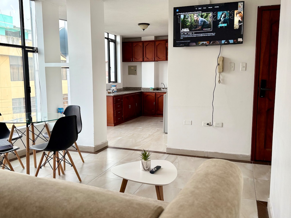 ✔️ Verified Superhost – Your stay will be in the best hands! Apartment in Riobamba, Ecuador 📍 Excellent location 🏡 Clean, comfortable, and safe space. 💬 I’m available to assist you throughout your entire stay. 🔑 Book today and feel at home in Ecuador! 👨👧👧 Ideal for tourists, executives, couples, families, or groups of friends. The apartment offers: 🌐 WiFi 📺 TV 🍳 Kitchen 💧 Hot water 💻 Workspace 🌸 Washing machine 🎬 Movie room 🚗 Open parking