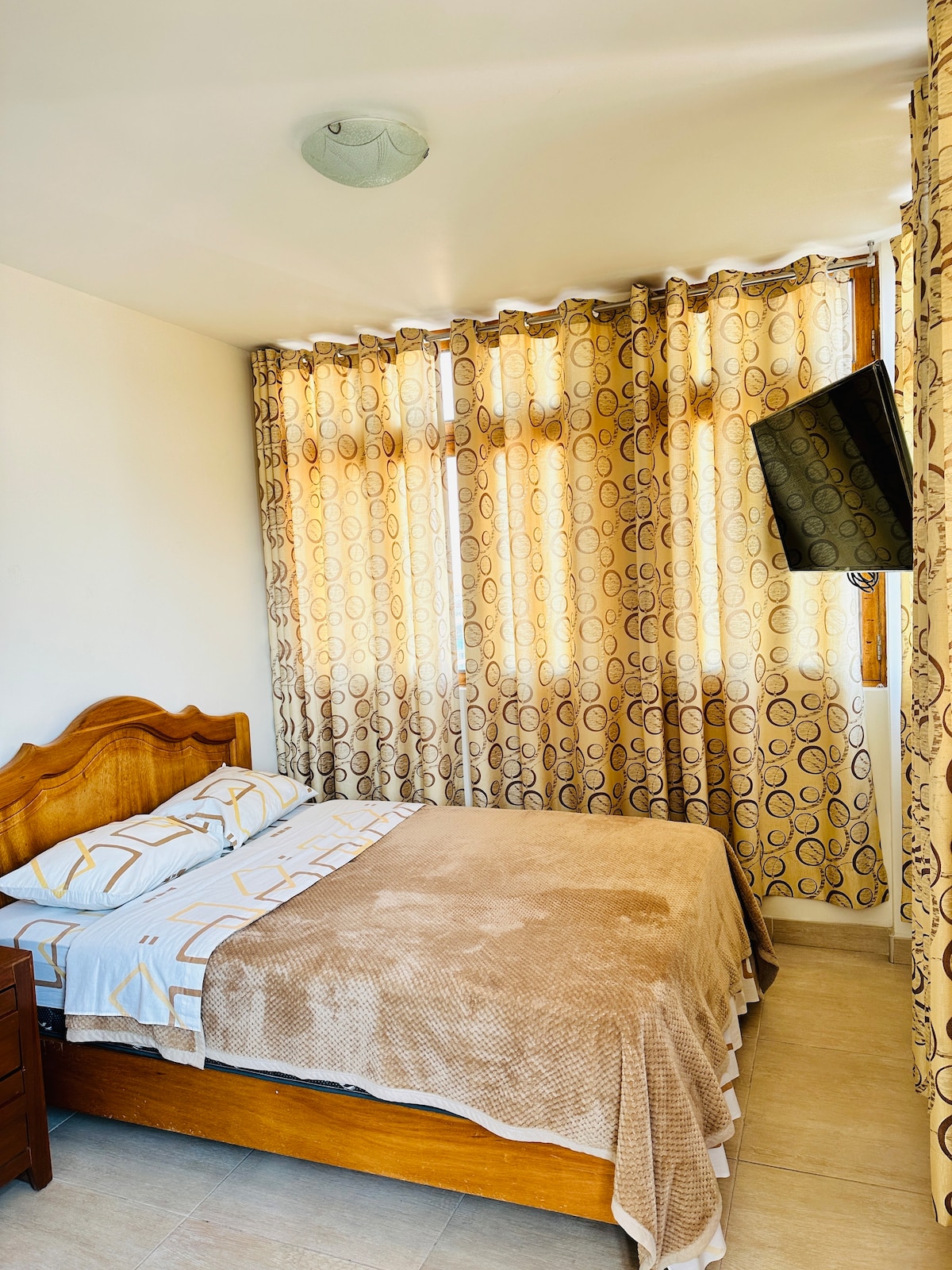 Departamento para familia en zona tranquila, a 10 min. de la plaza mayor. ubicado en el Tercer piso. cerca a la avenida principal y a paradero de autos. 2 habitaciones grandes, 1 cama de 2 plazas y un camarote (cama de 2 plazas abajo y de 1.5 plazas arriba)