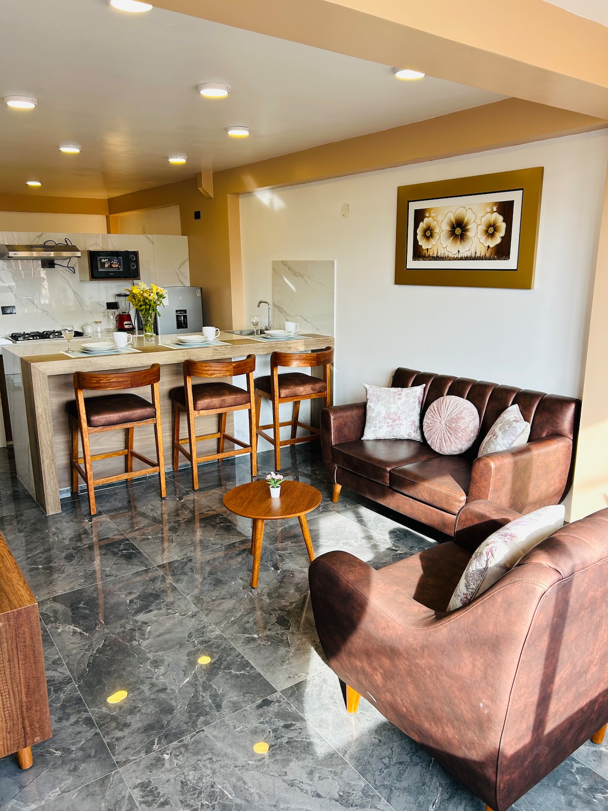 Bienvenido al Mini Departamento El mini departamento es amoblado se encuentra en el segundo piso con entrada independiente. Relájate en este espacio tranquilo, elegante y acogedor para disfrutar solo o en compañía.