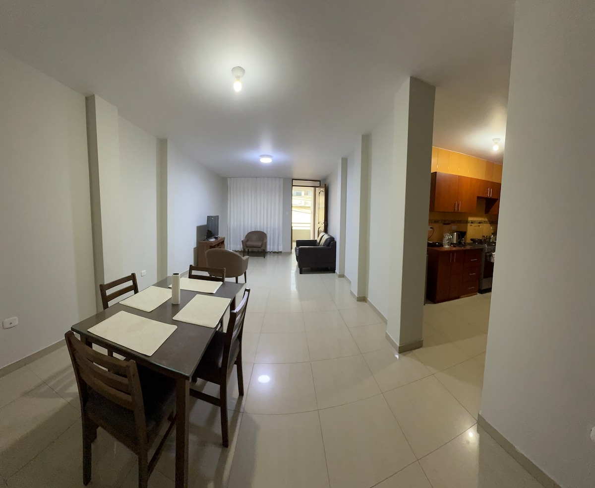 Moderno y acogedor departamento de estreno ideal para parejas o viajeros solos. Cuenta con 1 habitación con cama queen y ropero empotrado, sala cómoda con Smart TV y escritorio, cocina equipada con electrodomésticos modernos y baño completo con agua caliente. Un espacio funcional y confortable, perfecto para una estadía práctica y relajante.