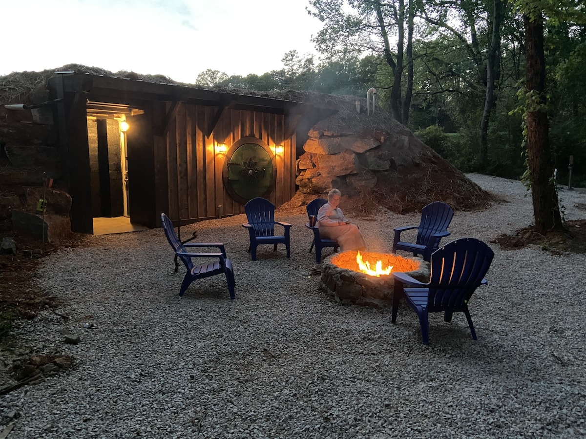 This is the 2nd "Hobbit House" on the Cherry Treesort property. It's a spacious 395 sq feet with a queen bedroom, circle door entry, living room with a queen sofa bed, and a full bathroom. The Hobbit House sits on 27 acres with the 8 other treehouses we have built. Come stay in one of the most unique stays in the country, you wont be disappointed.
