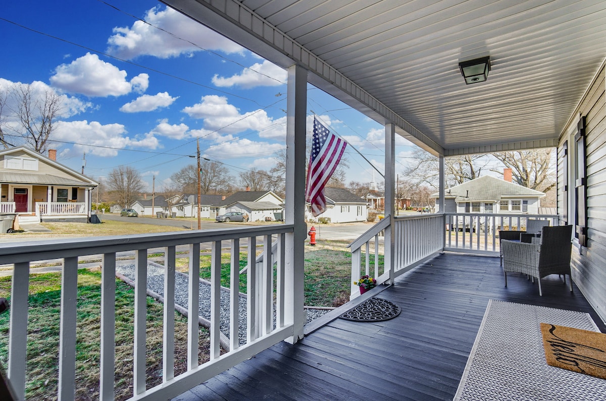 Enjoy your stay at this charming 2 bedroom mill house located just 1 mile from downtown Kannapolis. This home has been recently renovated but the 1925 character has been kept. It comes fully furnished including 3 Roku TVs, 2 beds (1 queen and 1 full), washer & dryer, full sized kitchen with cookware and utensils. Enjoy your morning coffee on the porch swing. Close to I-85 and lots of entertainment and only 20 minutes from Charlotte Motor Speedway. Pet friendly home. Backyard is fenced in.