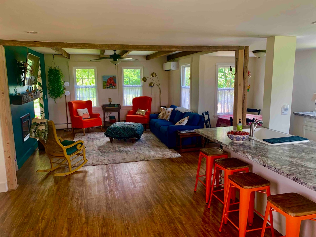 Centrally located modern guest home in Augusta, access points to Portland, Midcoast Maine, and Bangor. Spacious master bedroom with closet, additional bedroom, both bedrooms with queen size beds. Handicap bathroom equipped with grab rail and also handicap accessible shower with sit down bench. Many brand new amenities. 55 inch TV has Roku with access to Netflix , Disney Plus, and more! Strong WiFi with the ability to work remotely if needed and explore Augusta and surrounding area.