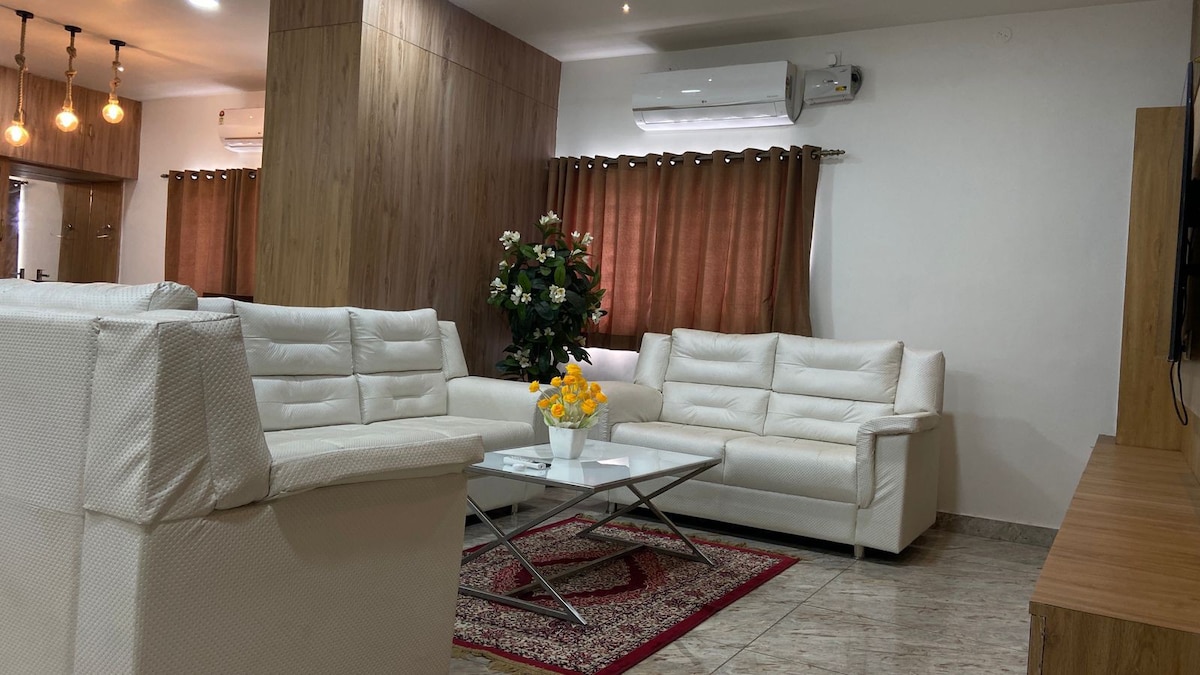 Relax with the whole family at this peaceful and cozy 2BHK retreat. Our beautifully furnished apartment is ideal for city living and comes fully equipped with modern amenities, including Air condition, TV, high-speed WiFi, washing machine, fridge, and more. Whether you're staying for a short getaway or an extended visit, everything you need for a comfortable and convenient stay is right here. Plus, with a dedicated car parking spot, enjoy the ease of hassle-free urban living in style! No alcohol