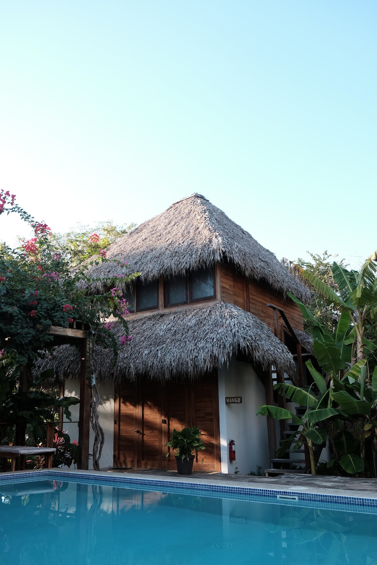 Mellow Resort is nestled in the tropical Pacific part of Nicaragua. With our green garden and 5 beautiful and luxurious cabins made out of wood and concrete we offer a comfortable stay while being emerged in nature. Each of our 50m2 cabins are comfortable for couples, friends or families and offers comfort with our ACs and our luxurious and spacious design. We also have a chill/restaurant area and unique pool that makes your stay unforgettable.