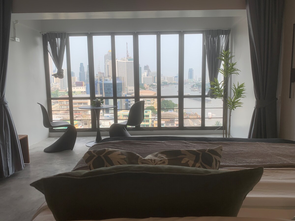 ⭐THIS LOFT IS LISTED IN THE BEST 10 AIRBNBS IN BANGKOK BY CONDÉ NAST TRAVELER ⭐ ✓5 star service from the HIGHEST RATED HOST in this building ✓Spectacular views of the Riverfront from our private balcony ✓Spacious 70sqm. ✓Street food galore(Michelin guide's) ✓Famous Sky Bar on top of the building ✓High speed internet ✓Airport Pick-up(fee) ✓Ideal location/5 mins walk to train&pier ✓Luggage deposit service ✓The best Bangkok guidebook written by me ✓Equipped with everything for a comfortable stay